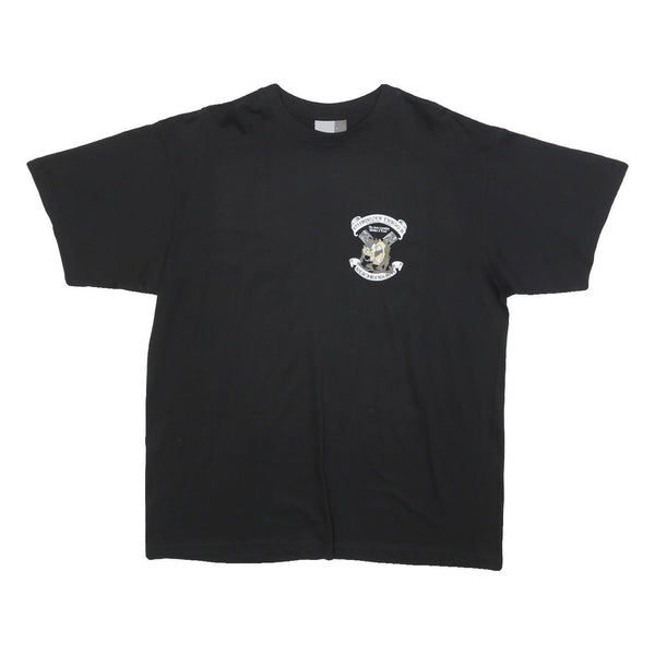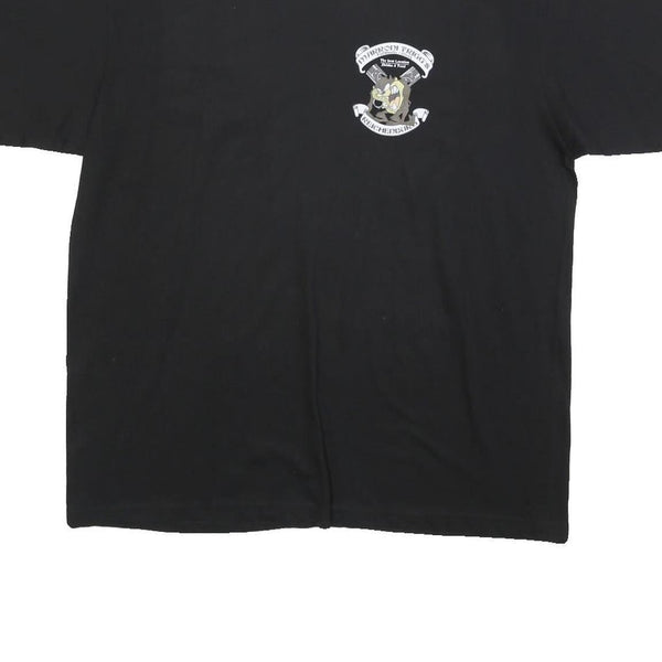 PROMO DORO Mens Black Graphic T-Shirt L Short Sleeve Crew Neck Cartoon Design