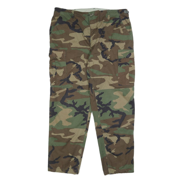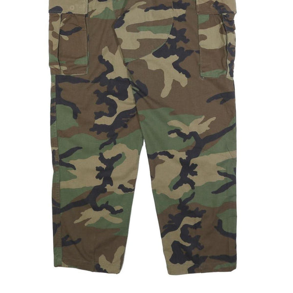 The trousers include multiple pockets typical of cargo design, with flap closures for secure storage. The button closure at the waist and sturdy belt loops ensure a secure and adjustable fit. Ideal for casual or outdoor use, these trousers combine practical design with authentic camo style.