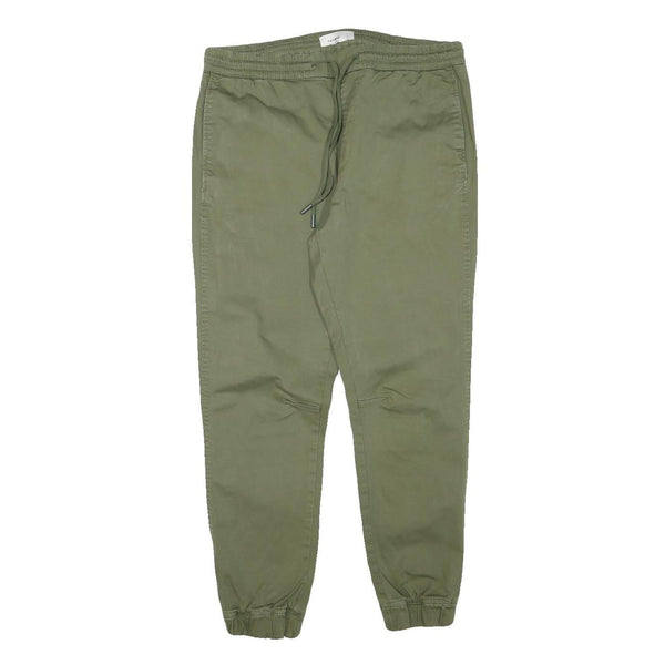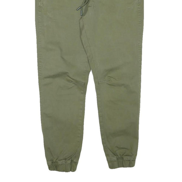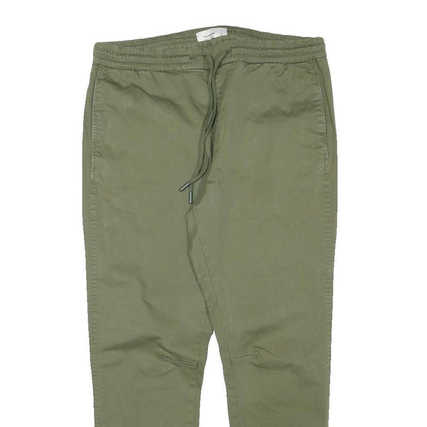 PULL AND BEAR Mens Cotton Blend Olive Relaxed Jogger Trousers W32 L27 Drawstring