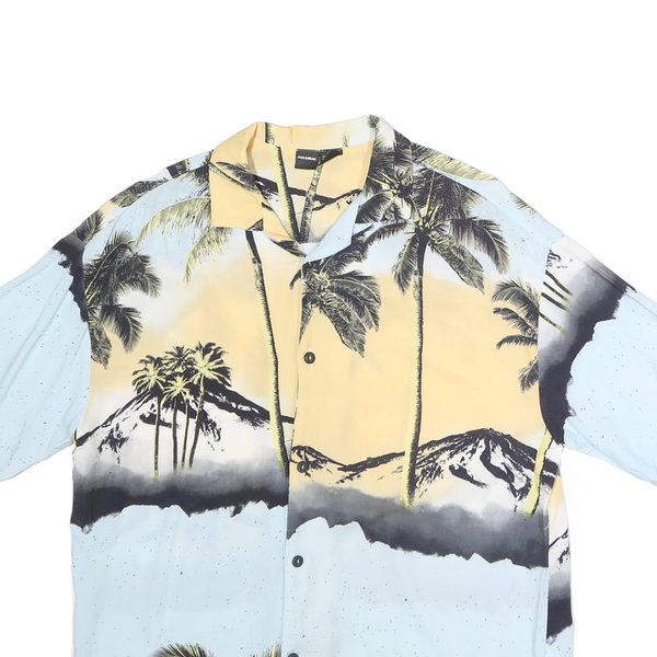 Home PULL & BEAR Mens Blue & Yellow Tropical Print Shirt S Casual Cotton Blend Summer