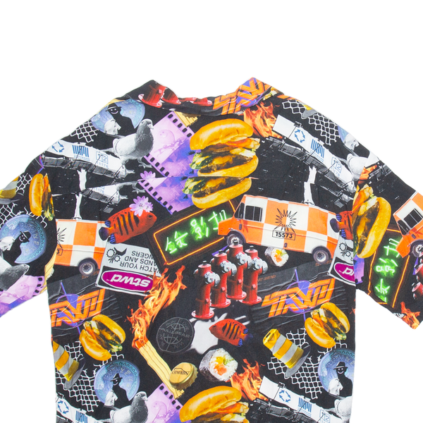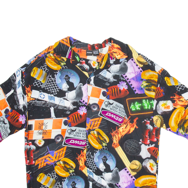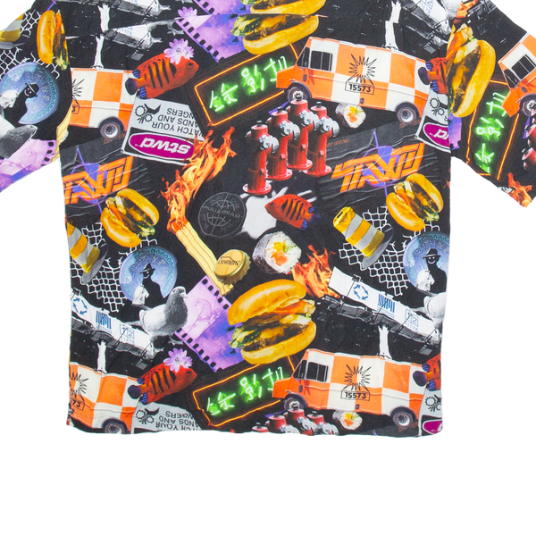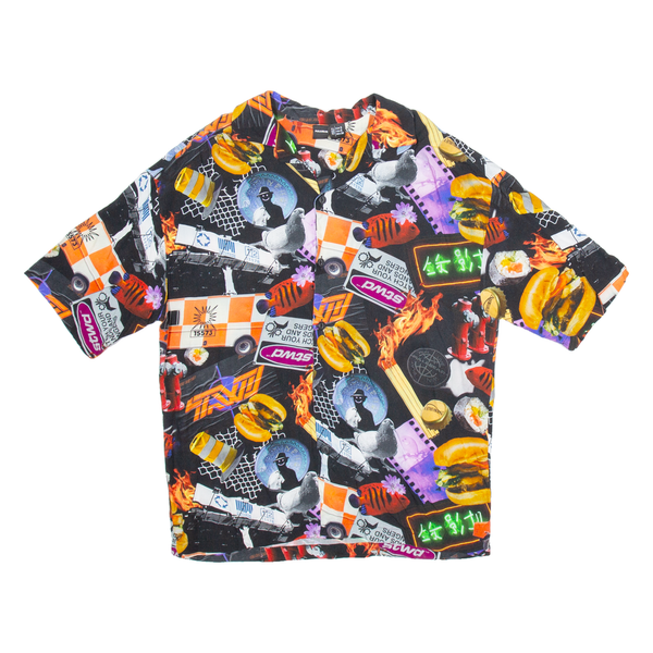 PULL & BEAR Mens Shirt Black Crazy Pattern S