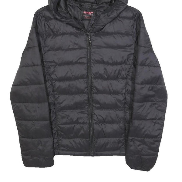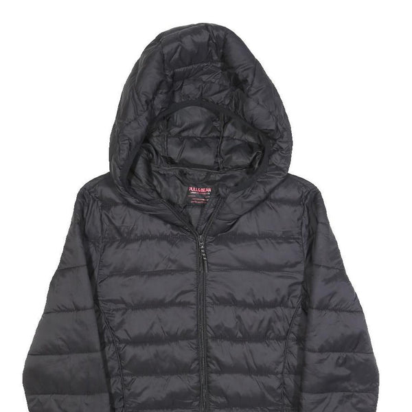 PULL & BEAR Womens Black Polyester Blend Quilted Hooded Jacket XS Zip Closure