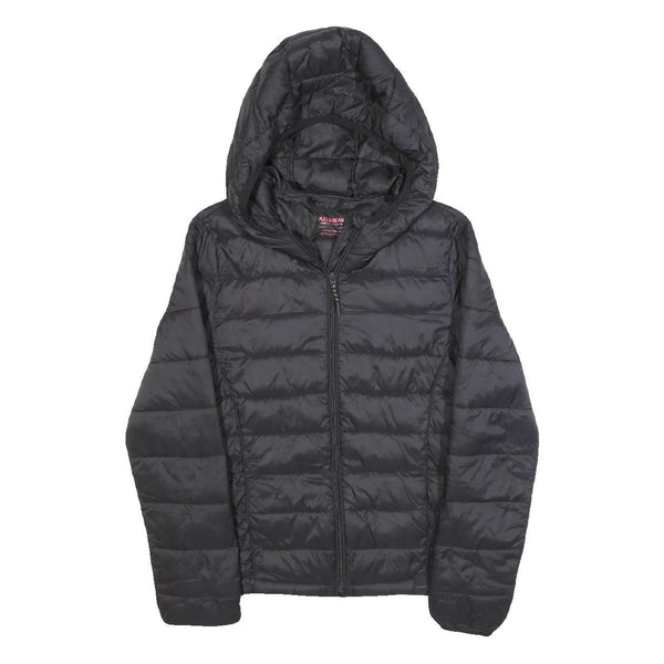 Pull & bear womens black polyester blend quilted hooded jacket xs zip closure