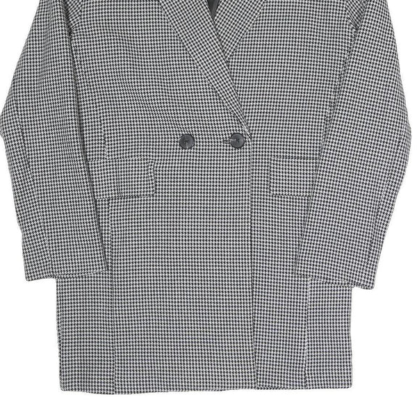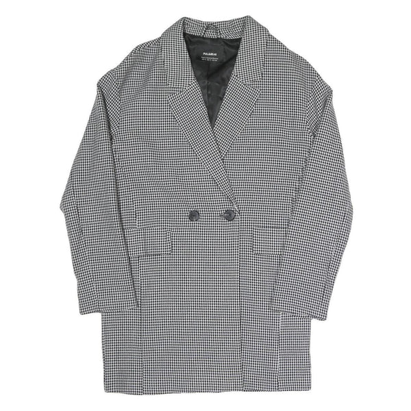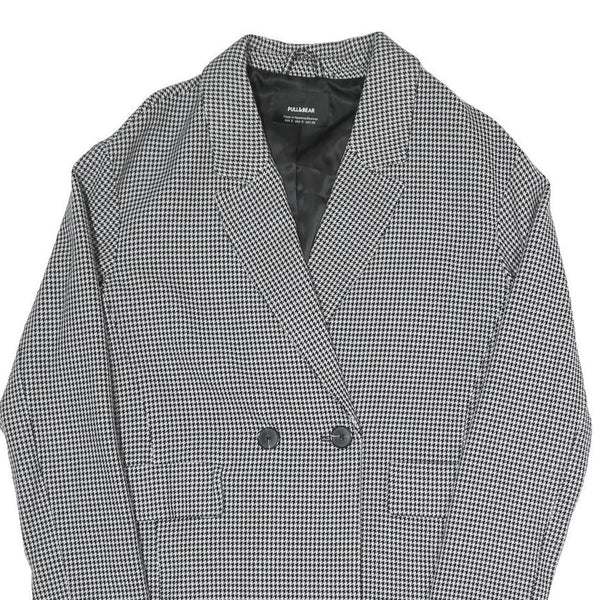 PULL&BEAR Womens Black & White Check Tailored Blazer S Polyester Blend Woven