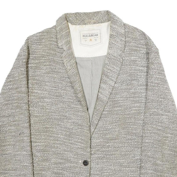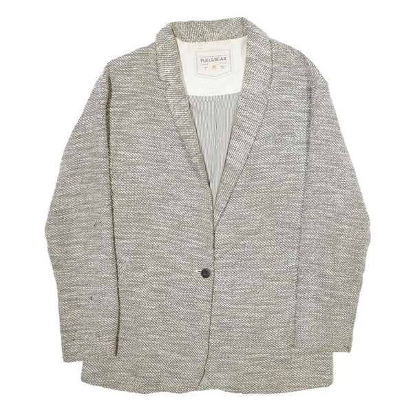 PULL & BEAR Womens Grey Button Jacket S Woven Classic Relaxed Fit Smart Casual