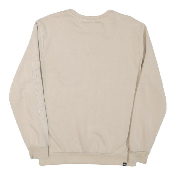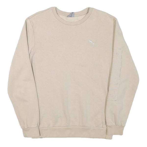 PUMA Mens Beige Cotton Blend Sweatshirt S Crew Neck Logo Print Casual Pullover