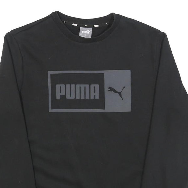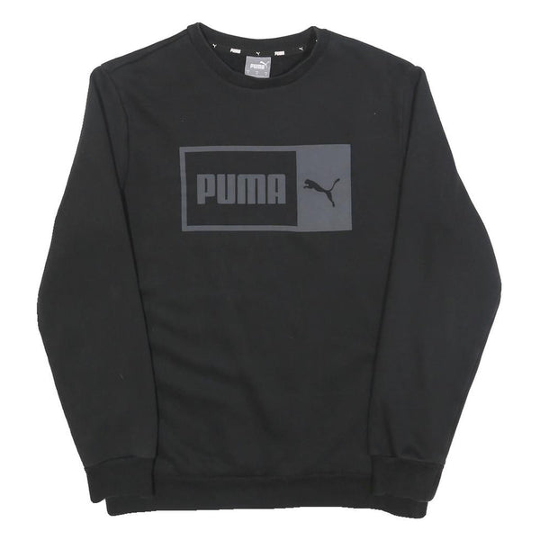 PUMA Mens Black Crew Neck Sweatshirt M Cotton Blend Logo Print Casual