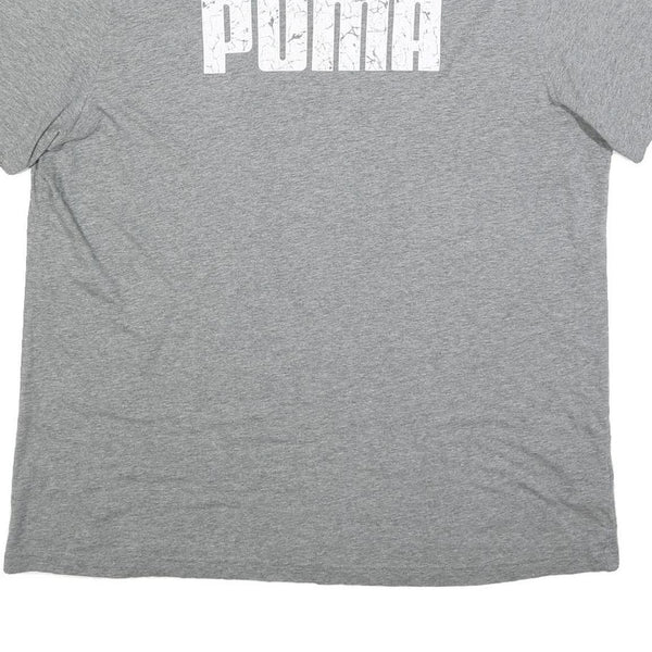 This men's PUMA T-shirt is crafted from a comfortable cotton blend fabric in a versatile grey shade. The front features a bold, distressed white PUMA logo print across the chest for a sporty, casual look. The shirt is designed with short sleeves and a classic crew neckline, offering an easy-to-wear fit ideal for everyday casual wear.