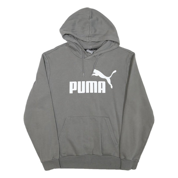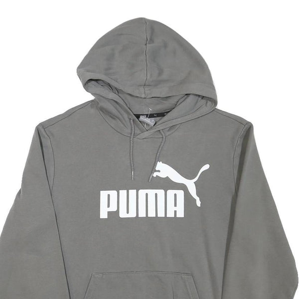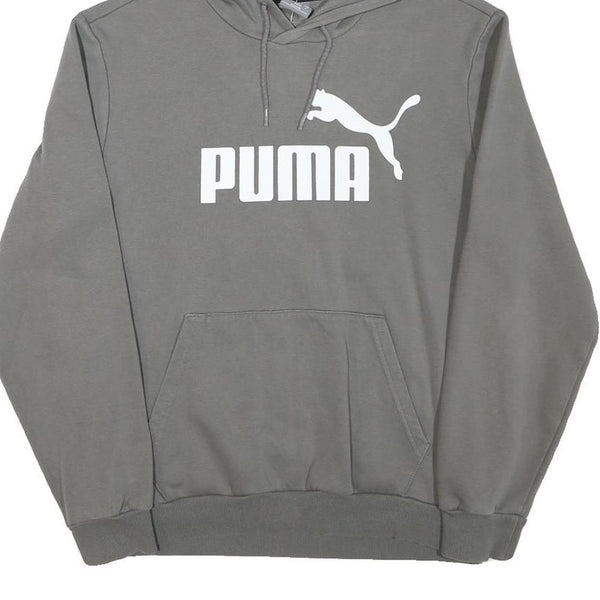 PUMA Mens Grey Hoodie S Cotton Blend Pullover Sweatshirt Drawstring Hood