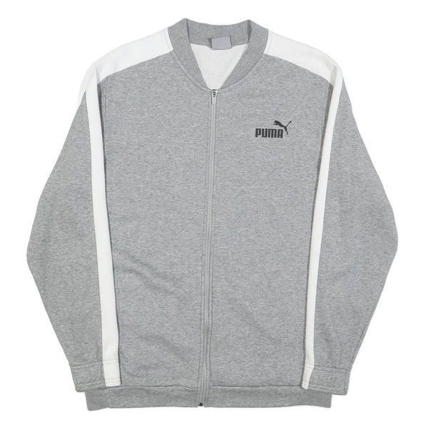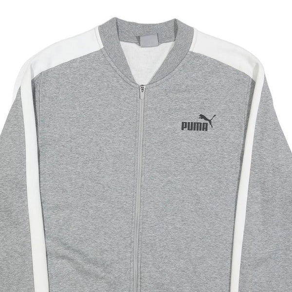 PUMA Mens Grey & White Zip Jacket L Cotton Blend Plain Sportswear Casual