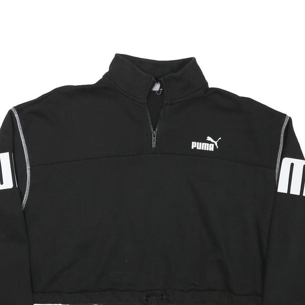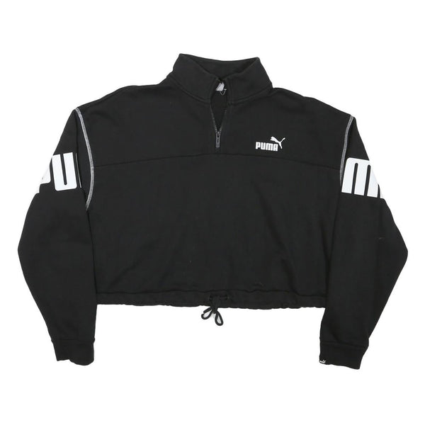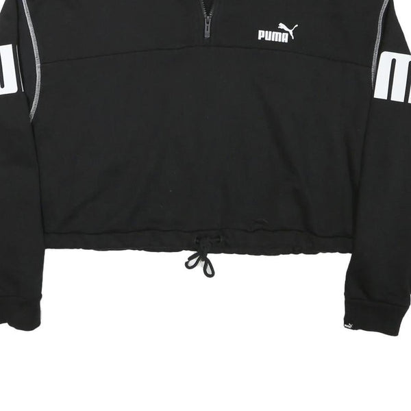 PUMA Womens Black 1/4 Zip XL Logo Print Cropped Sweatshirt