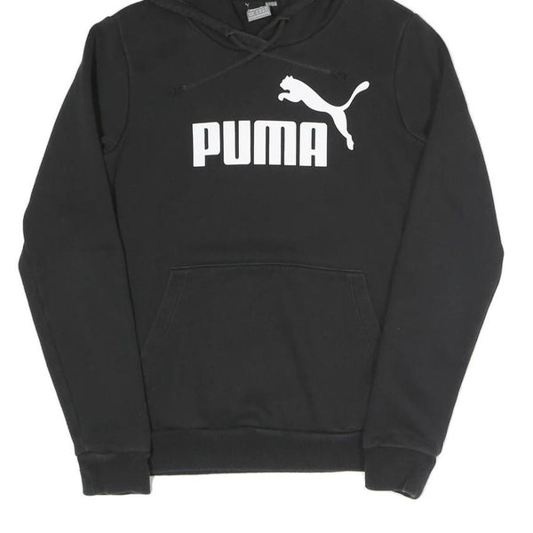 PUMA Womens Black Hoodie UK 6 Cotton Blend Pullover Logo Sweatshirt