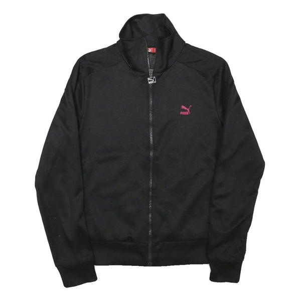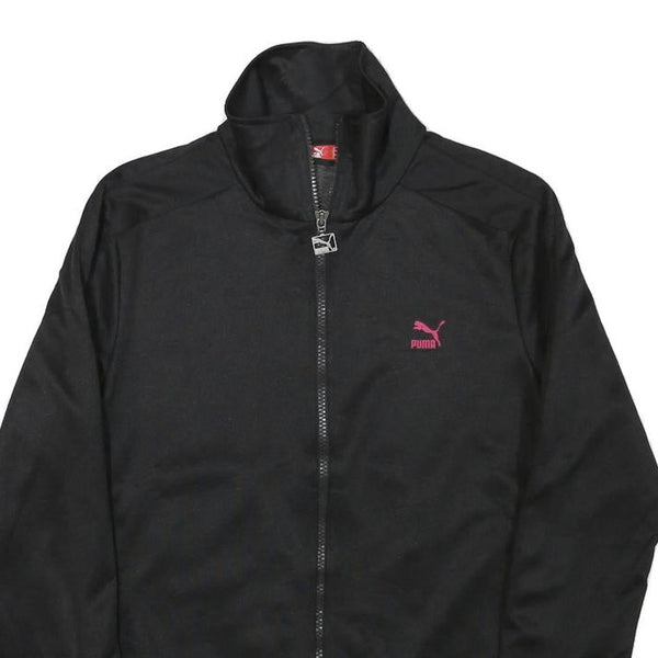PUMA Womens Black Pink Logo Jacket M Polyester Blend Zip Athletic Track Top