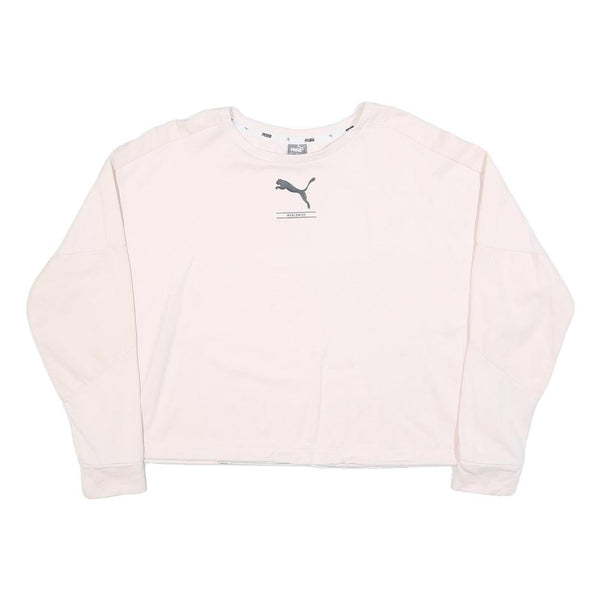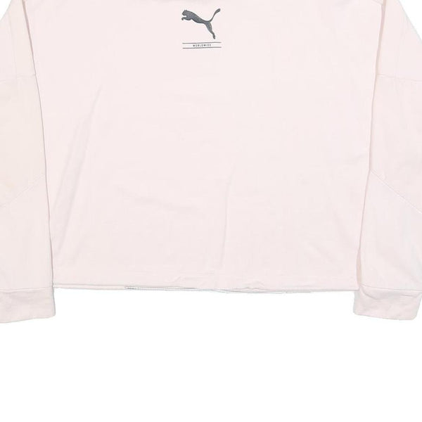 PUMA Womens White Crew Neck Sweatshirt S Cotton Blend Lightweight Pullover