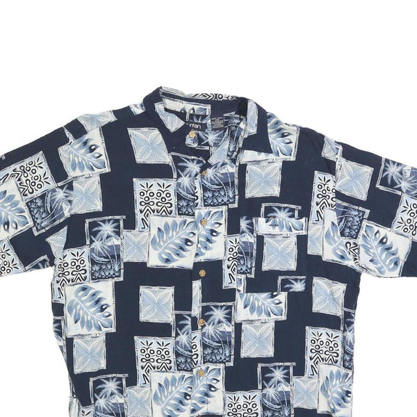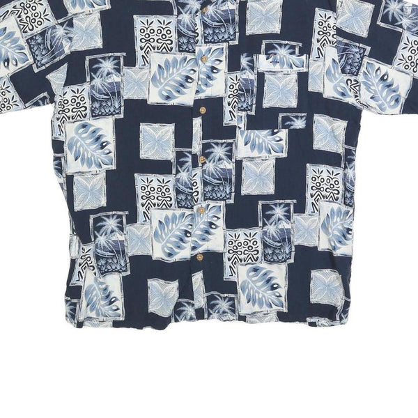 PURITAN Mens Blue & White Pattern Cotton Blend Shirt L Hawaiian Casual