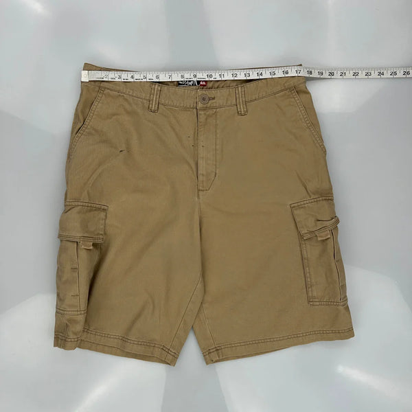 Quiksilver Cargo Shorts, fit a 34″ Waist and 11″ inseam.