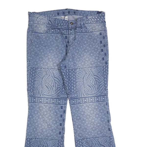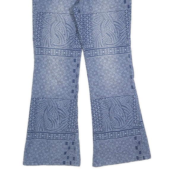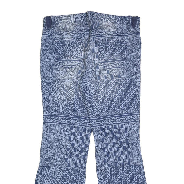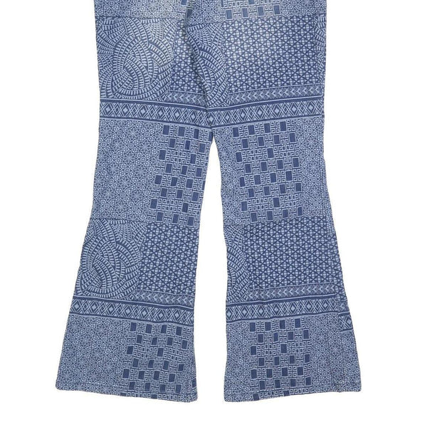 RAINBOW Mens Cotton Blend Blue Patterned Regular Flared Trousers W36 L32
