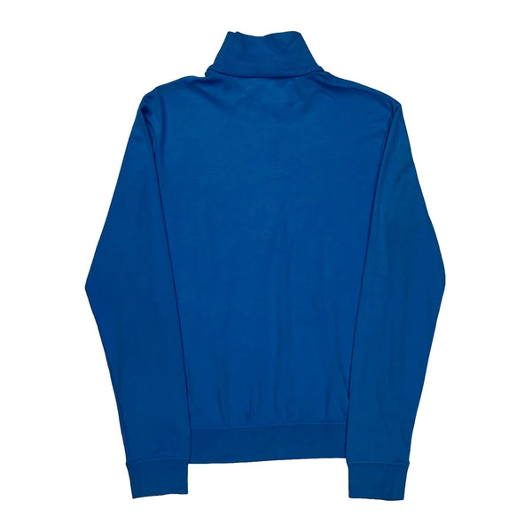 Blue Long Sleeve T-Shirt With High Neck And Zip Detail.