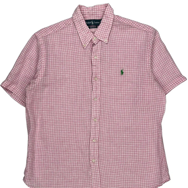 Ralph lauren checked short sleeve shirt - large pink cotton