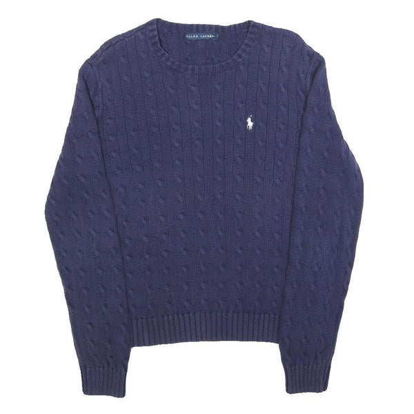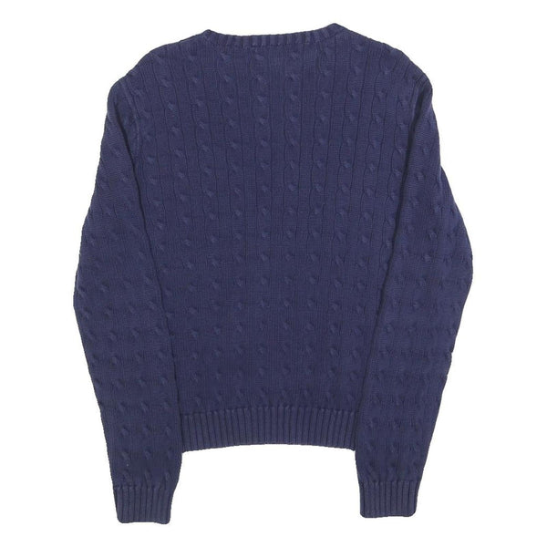 Ralph lauren girls blue patterned cotton blend jumper crew neck cable knit xl