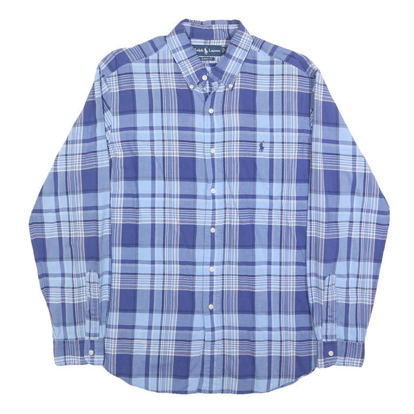 RALPH LAUREN Mens Blue & Light Blue Check Shirt L Classic Fit Cotton