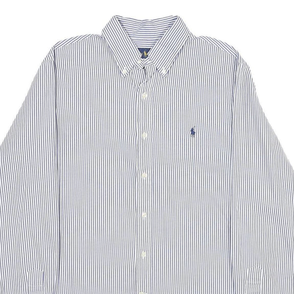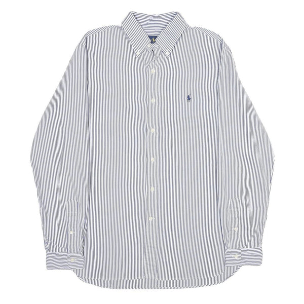 RALPH LAUREN Mens Blue & White Striped Shirt L Classic Cotton Button-Down Long
