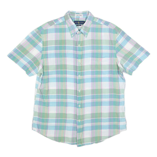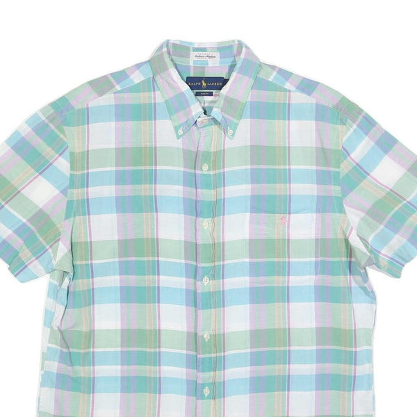 RALPH LAUREN Mens Green & Blue Check Shirt XL Summer Casual Cotton Short Sleeve