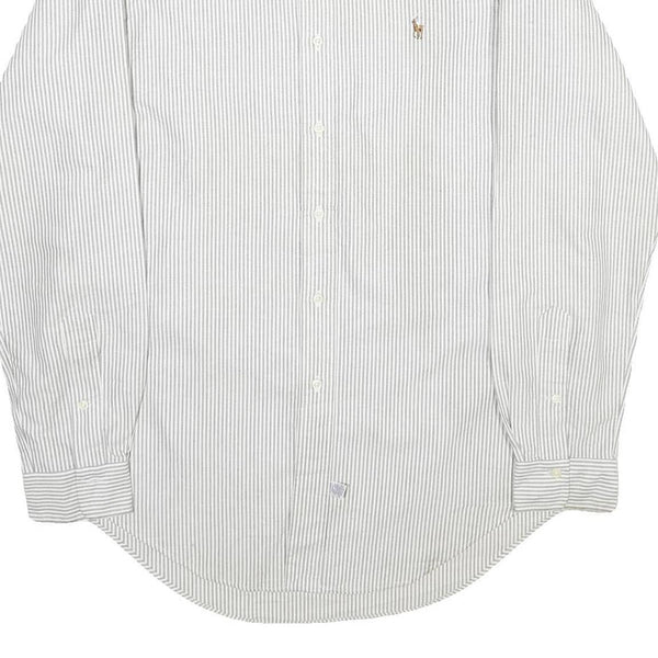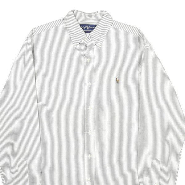 RALPH LAUREN Mens White & Grey Striped Shirt L Classic Button-Down Cotton