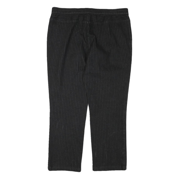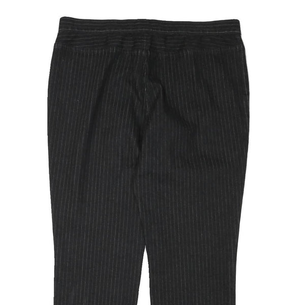These Ralph Lauren Polo Jeans Company womens trousers feature a refined black colour with subtle pinstripe detailing for a sophisticated look. They have a tailored regular fit and straight leg cut, making them ideal for both professional and smart-casual wear. The trousers fasten with a zip closure and have neat front pockets incorporated into the design.