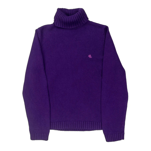 Purple Turtleneck Top With Ribbed Cuffs And Hem