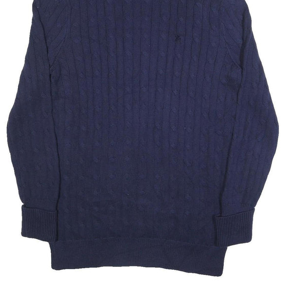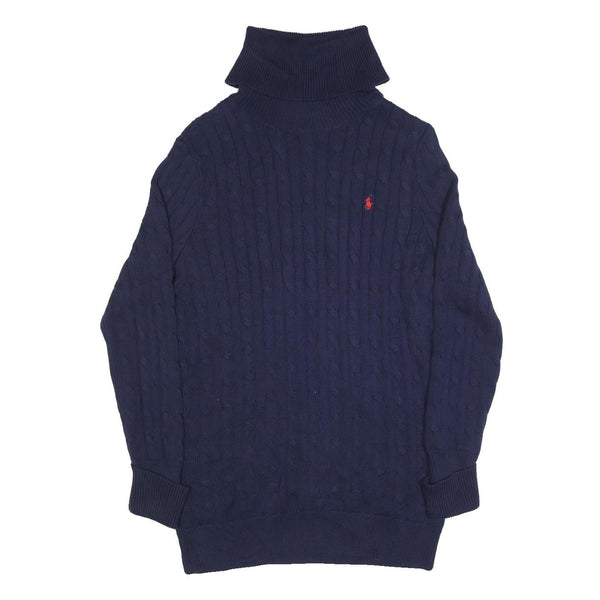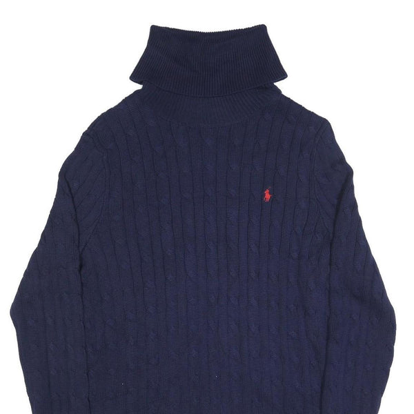 RALPH LAUREN SPORT Womens Navy Cable Knit Cotton Jumper Roll Neck XL Slim