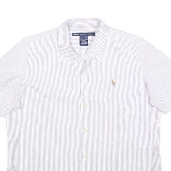 RALPH LAUREN SPORT Womens White & Grey Striped Shirt L Cotton Summer Casual