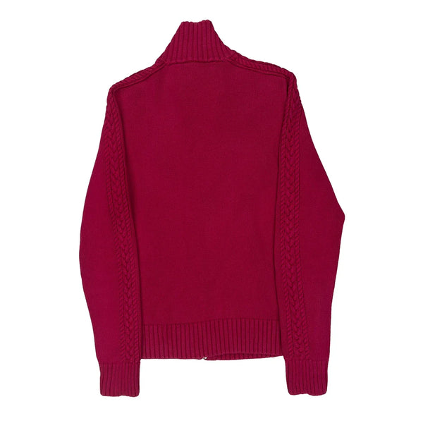 Red Zip-Up Top With Ribbed Collar And Cuffs