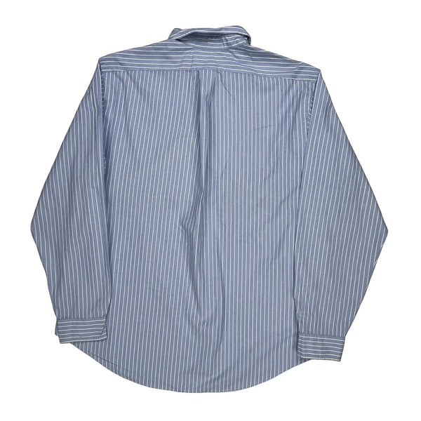 Blue And White Striped Button-Down Shirt With Logo Embroidery