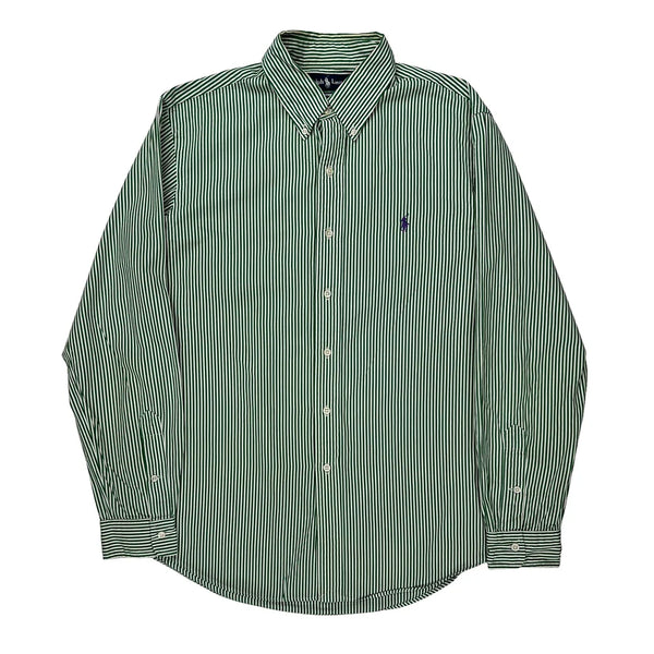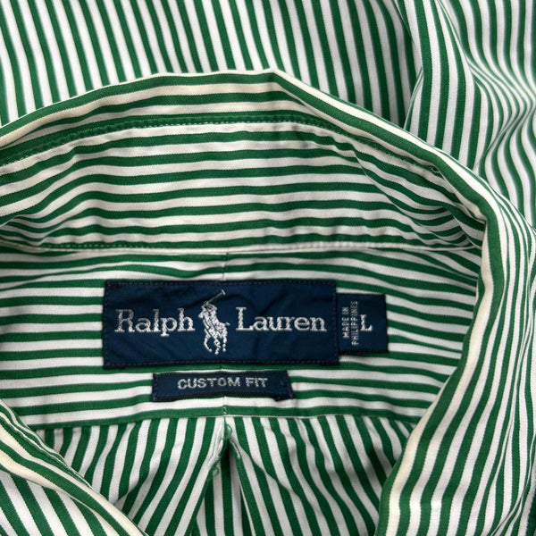 Green And White Striped Ralph Lauren Shirt, Custom Fit.