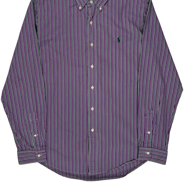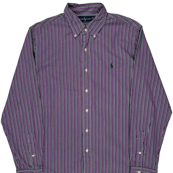 Ralph Lauren Custom Fit Shirt With Purple, Green, And White Stripes.
