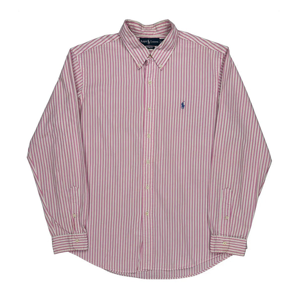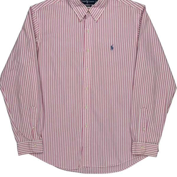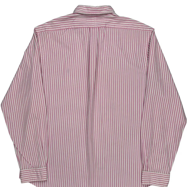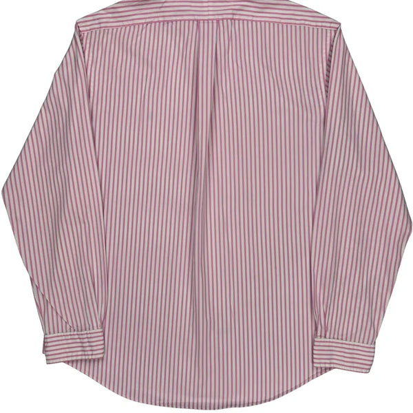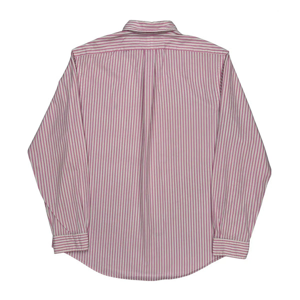 Pink And White Striped Shirt With Button-Down Collar.