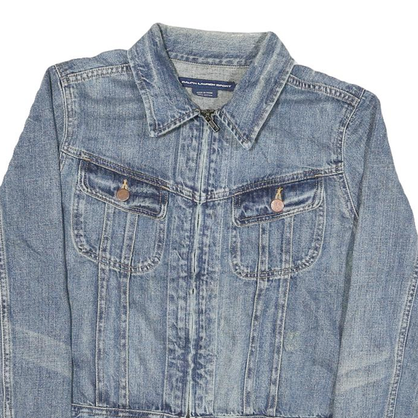 RALPH LAUREN Womens Blue Denim Jacket M Cotton Blend Classic Button Closure