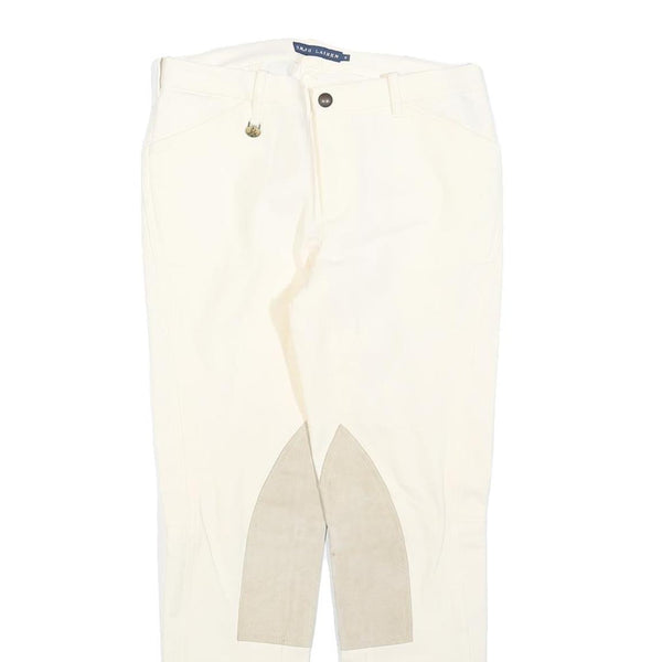 RALPH LAUREN Womens Cotton Blend White Slim Straight Trousers W28 L28 Zip