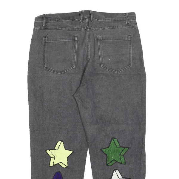 REAKINESSE Womens Regular Fit Grey Denim Zip Jeans W36 L26 Star Patchwork