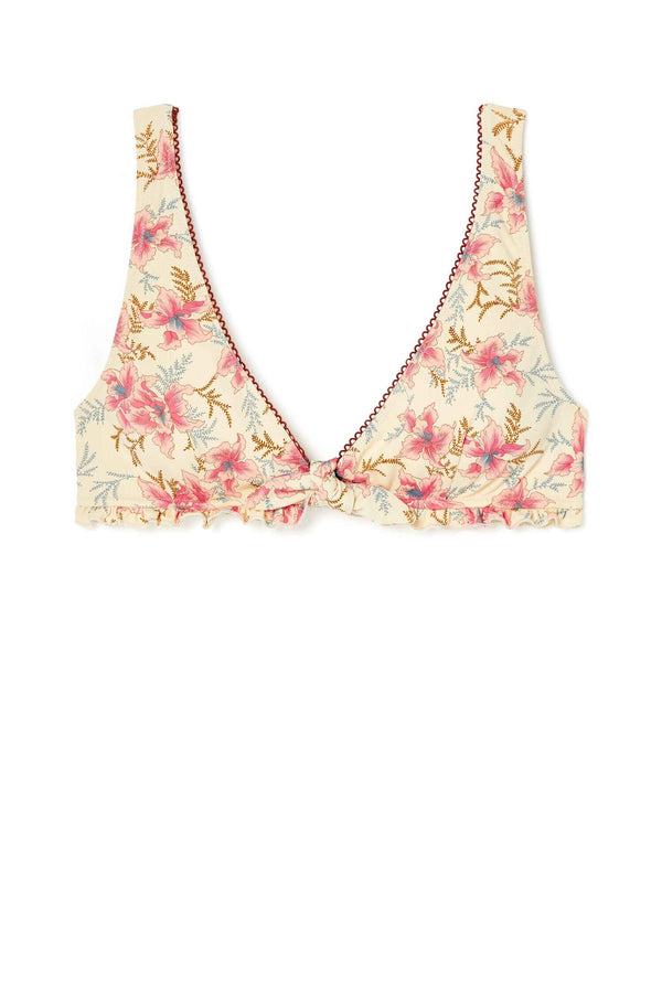 The women bikini top pays a tribute to shellfish! Adorned with vitamin-colored flowers, this plunging neckline swimsuit top highlights the breast and is perfect for sunny beaches. Here's a bohemian tip: never hesitate to mix colors and patterns!