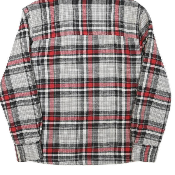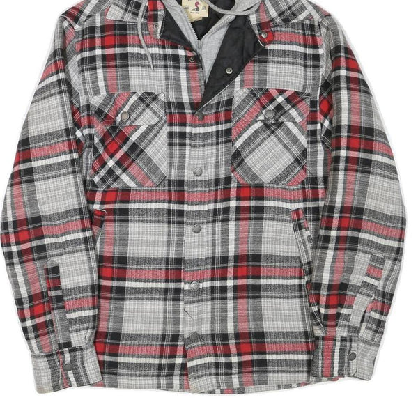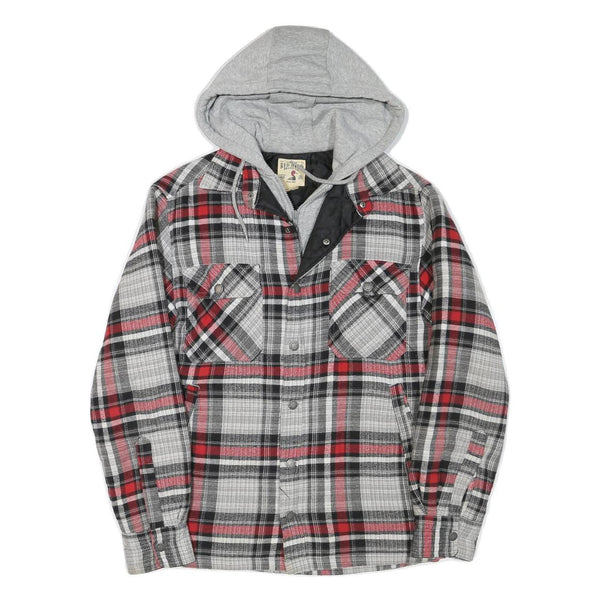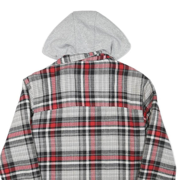 RED KAP Mens Grey & Red Hooded Check Jacket S Polyester Blend Zip Casual