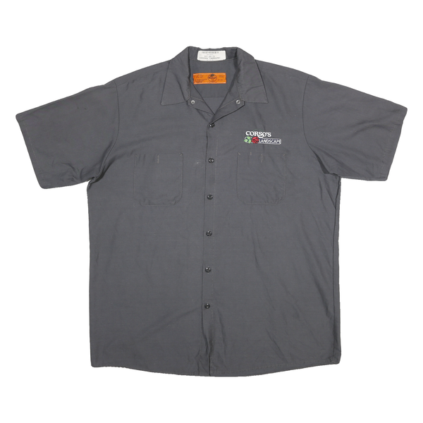 RED KAP Mens Grey Work Shirt XL Landscape Logo Cotton Blend Workwear