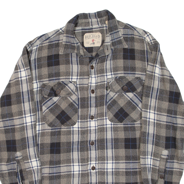 REDHEAD Mens Flannel Shirt Grey Check Long Sleeve M