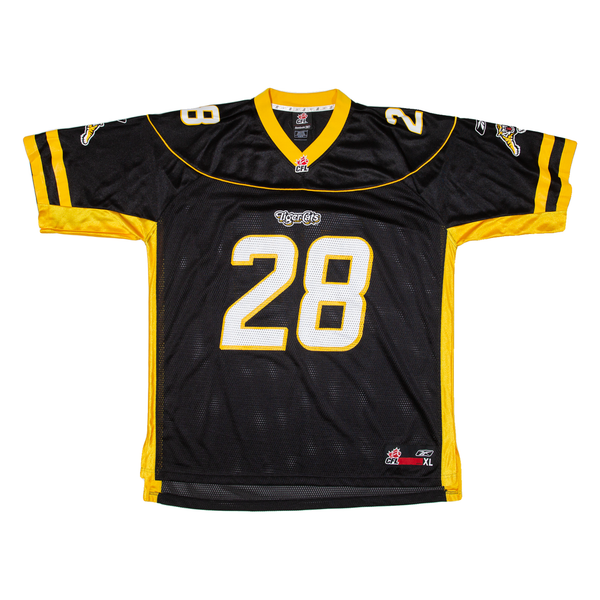 REEBOK CFL Hamilton Tiger-Cats Lumsden Mens Jersey Black USA V-Neck Nylon XL