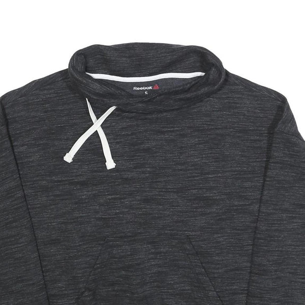 This womens Reebok sweatshirt is a sleek black pullover crafted from soft cotton for comfortable wear. The fabric features a subtle marled texture adding understated style throughout.