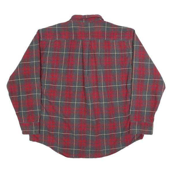 REED EDWARD Mens Red & Grey Check Shirt XL Button-Down Collar Long Sleeve Casual