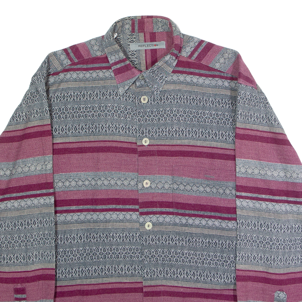 REFLECTION Mens Shirt Grey Striped Long Sleeve L