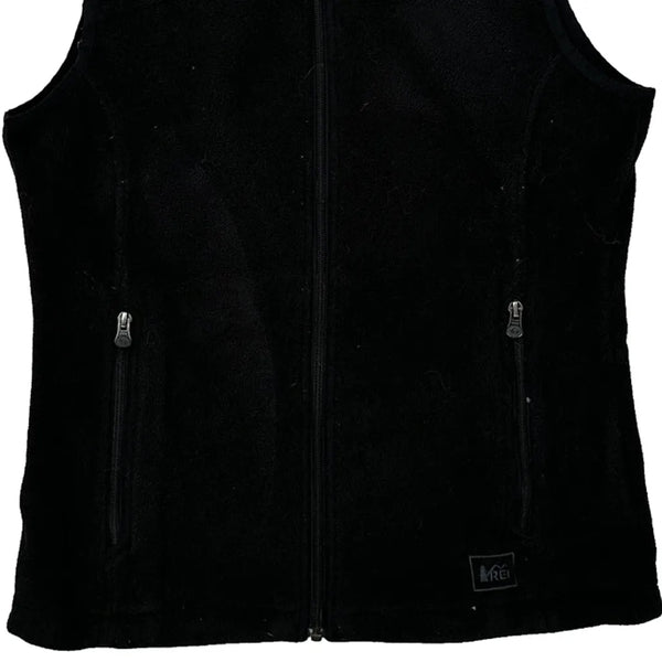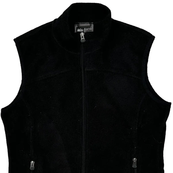 Black Fleece Vest With Zipper Closure And Two Front Pockets.