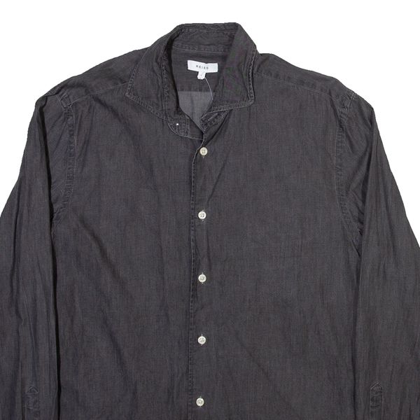 REISS Mens Plain Shirt Grey Long Sleeve L